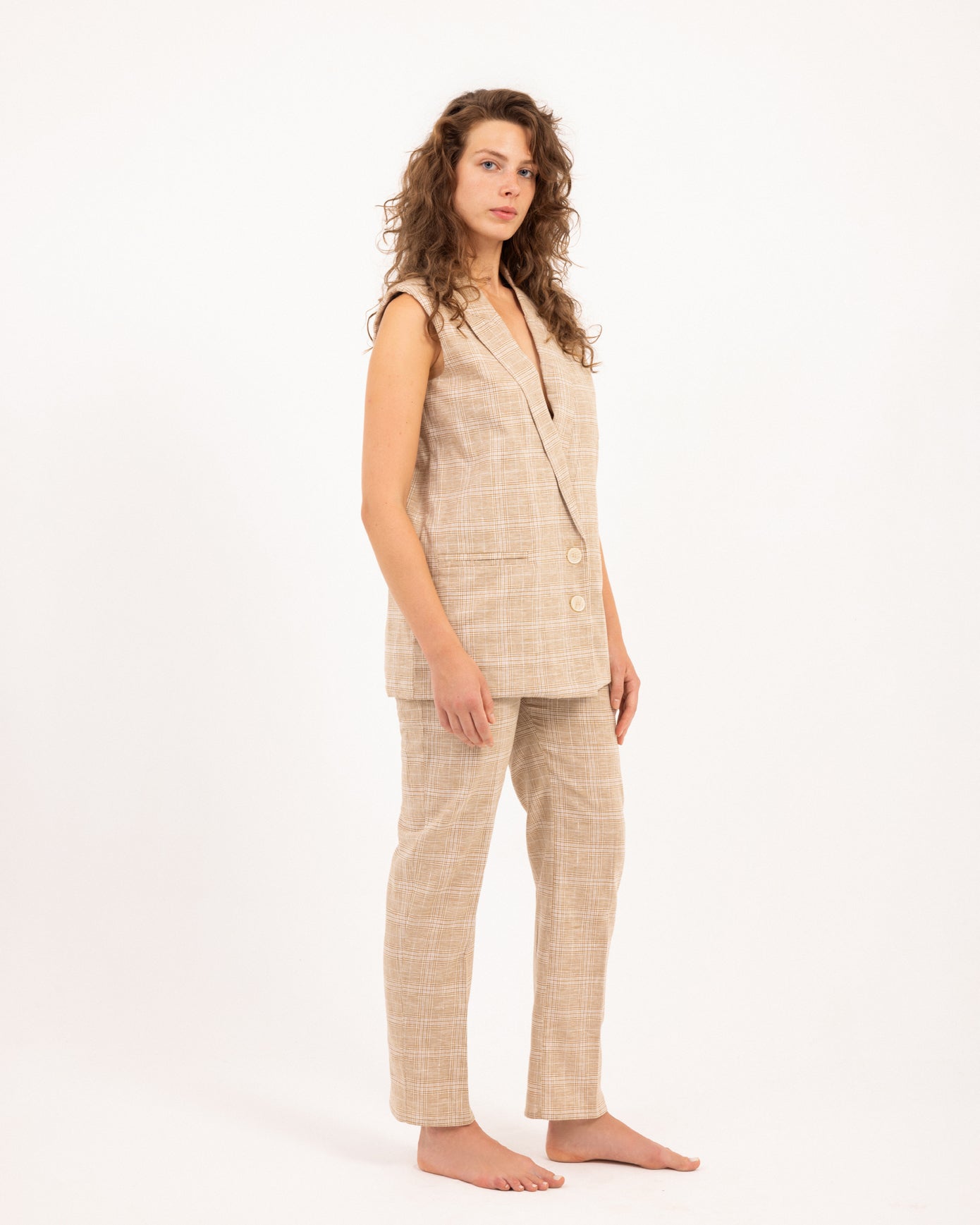 High-rise cropped trousers with front pockets, button and zip fly fastening.